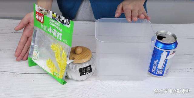 準備一瓶啤酒(過期的也行),兩三勺小蘇打,兩三勺食鹽。