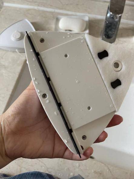 大家應該已經看出來了,這個玻璃擦手握的地方是空心的,是可以儲水的。兩部分磁片都有可以加水的小口,磁片里側也有出水小孔。這樣在擦玻璃的時候它會自動出水,讓玻璃一直保持濕潤狀態更加順滑。