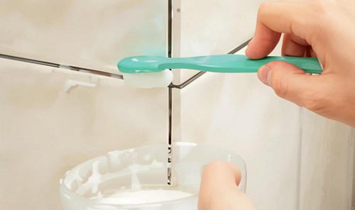 這些污垢光用水無法清除,我們可以準備一個噴壺,里面加入一些水,一飲料瓶蓋洗衣粉,兩瓶蓋白醋,三瓶蓋白酒,將這些材料都加入噴壺后搖晃均勻,就可以得到一瓶自制清潔劑,將清潔劑噴在瓷磚上,用刷子一刷就可以輕松將瓷磚上的污漬刷掉,再用水一沖,瓷磚立馬就會變得光潔如新。